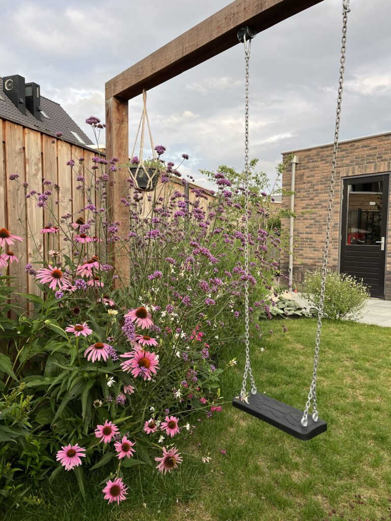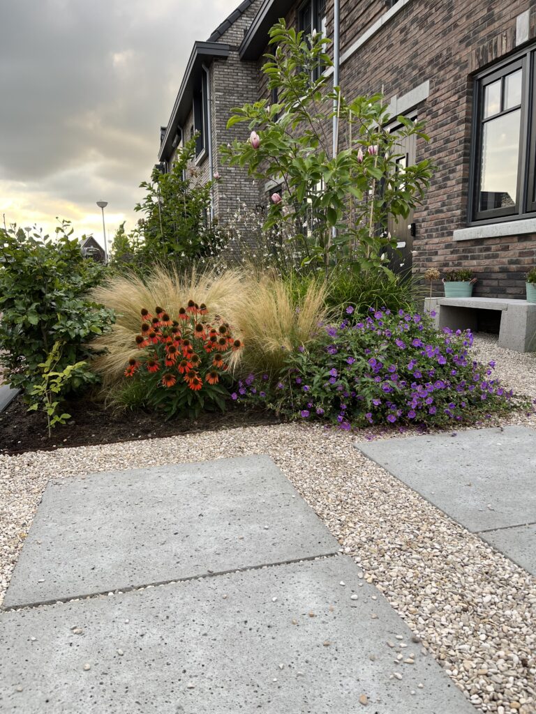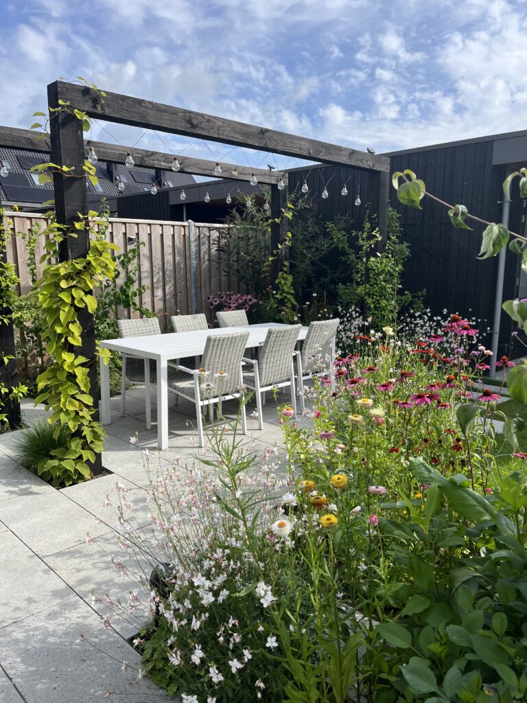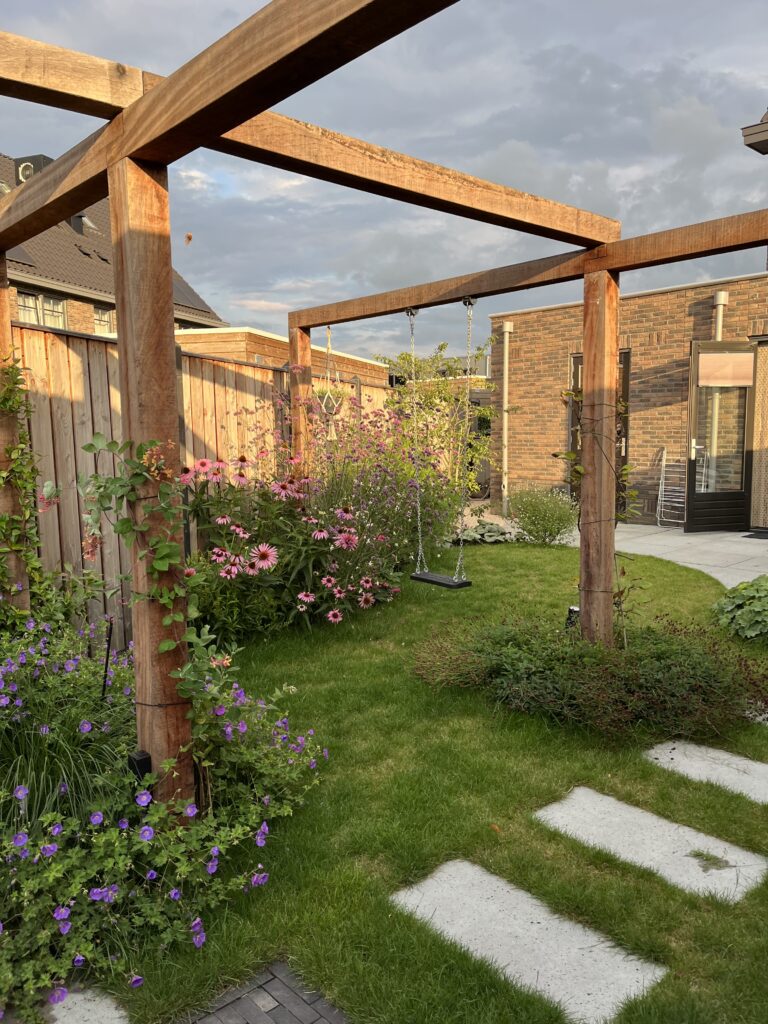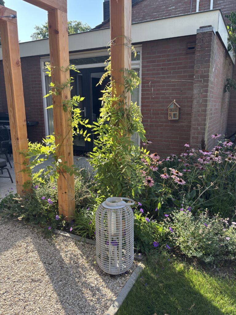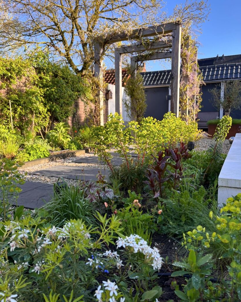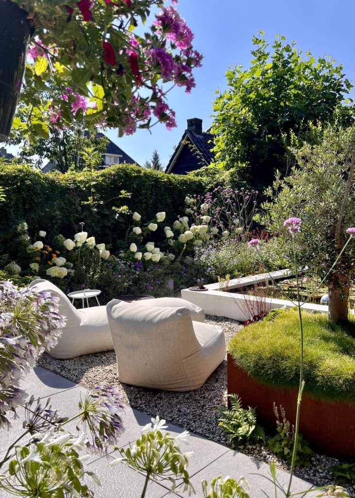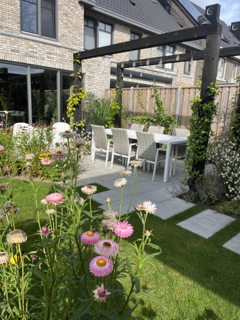 “Ondanks onze verschillende wensen en de afwijkende vorm van onze tuin, heeft Margreet een prachtig passend tuinontwerp gemaakt. Ze heeft ons van begin tot eind vol passie meegenomen in het ontwerpproces en uitgelegd wat het effect van bepaalde elementen in het ontwerp voor de tuin zouden betekenen. Margreet is vol enthousiasme en creativiteit. In haar ontwerp wordt aan de kleinste details gedacht. Wij zijn onwijs blij met het eindresultaat en kunnen nu heerlijk genieten onze tuin.