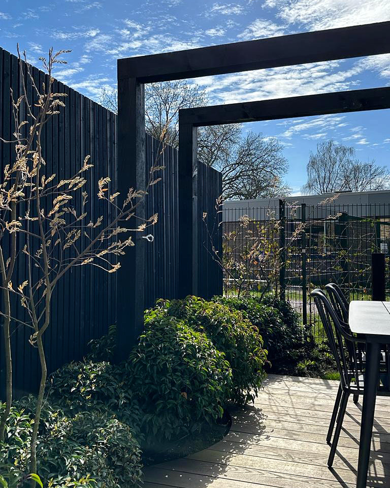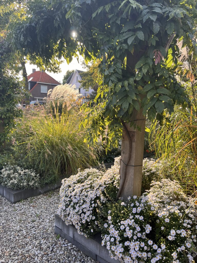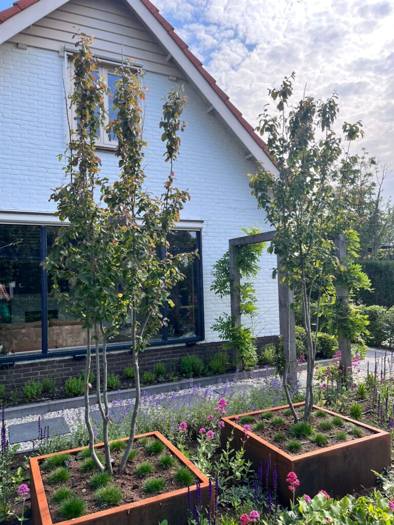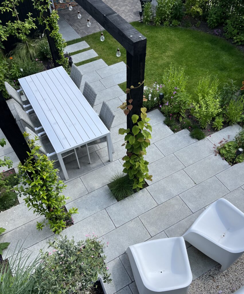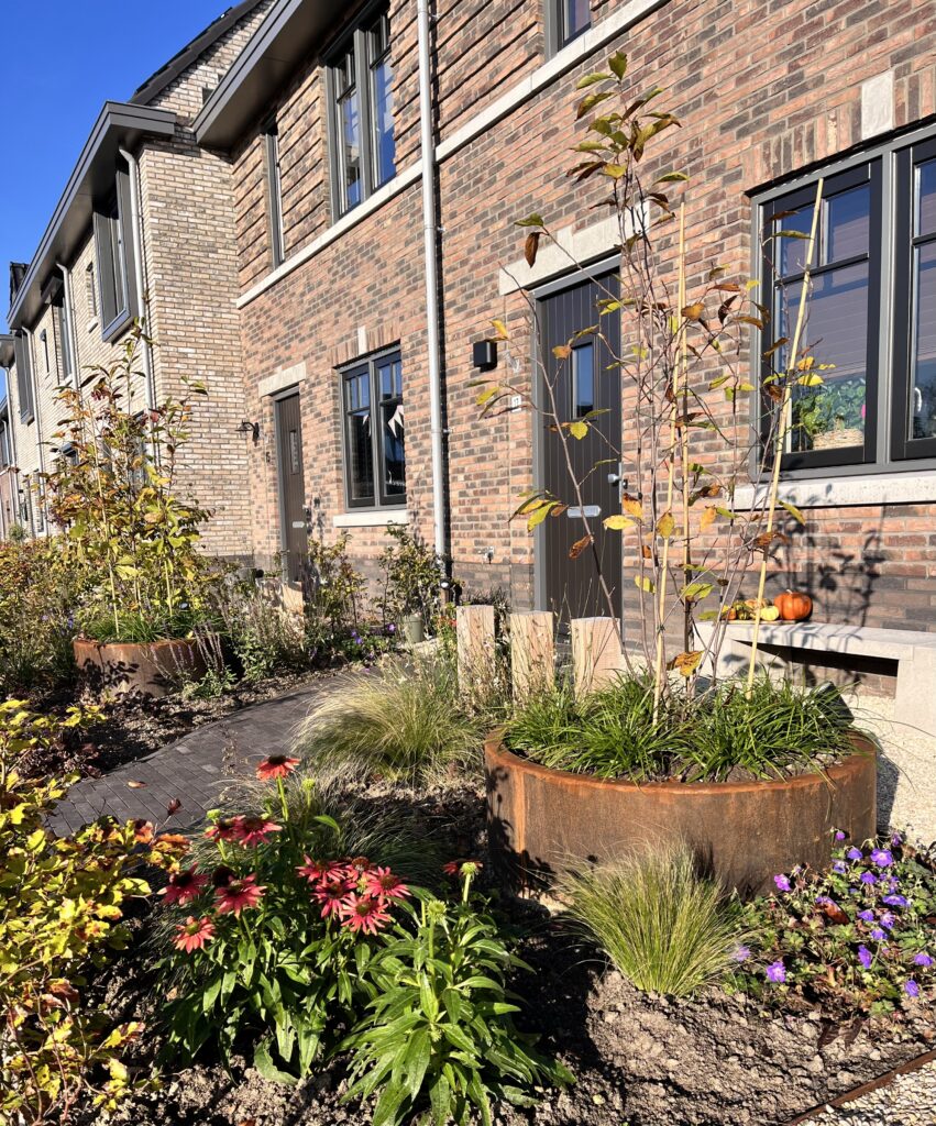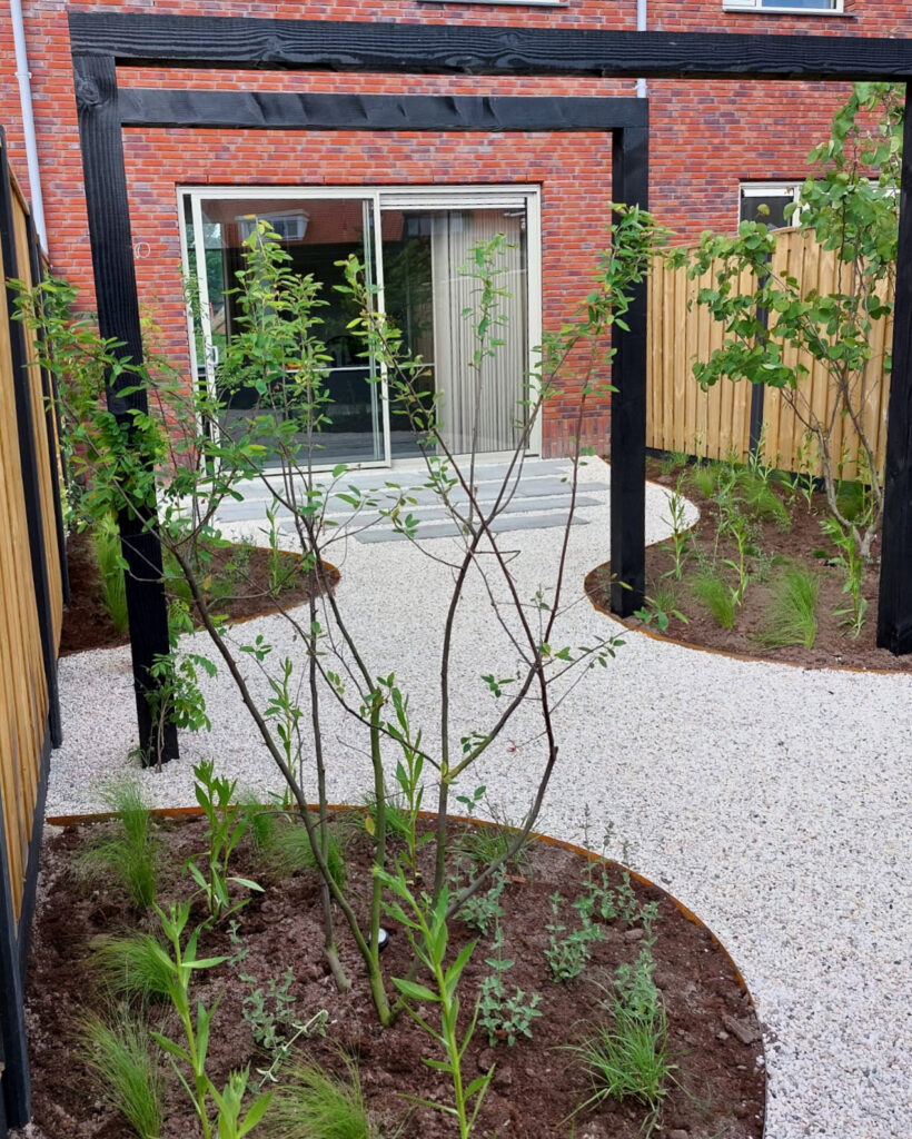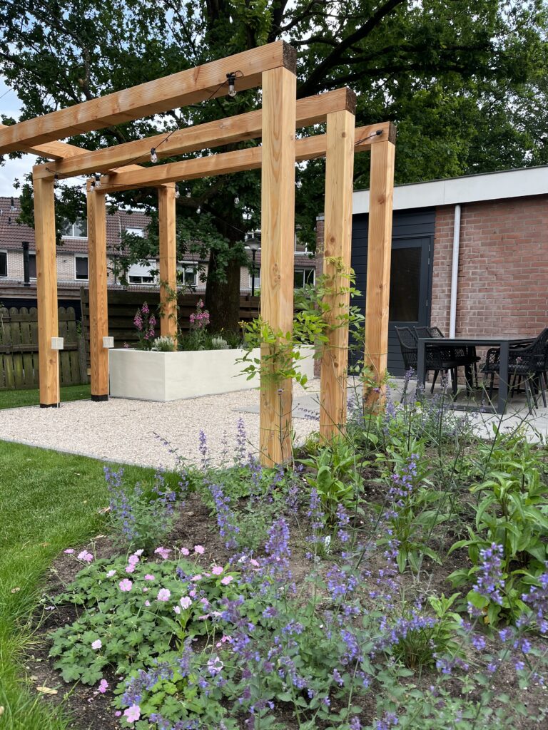 “Ondanks onze verschillende wensen en de afwijkende vorm van onze tuin, heeft Margreet een prachtig passend tuinontwerp gemaakt. Ze heeft ons van begin tot eind vol passie meegenomen in het ontwerpproces en uitgelegd wat het effect van bepaalde elementen in het ontwerp voor de tuin zouden betekenen. Margreet is vol enthousiasme en creativiteit. In haar ontwerp wordt aan de kleinste details gedacht. Wij zijn onwijs blij met het eindresultaat en kunnen nu heerlijk genieten onze tuin.