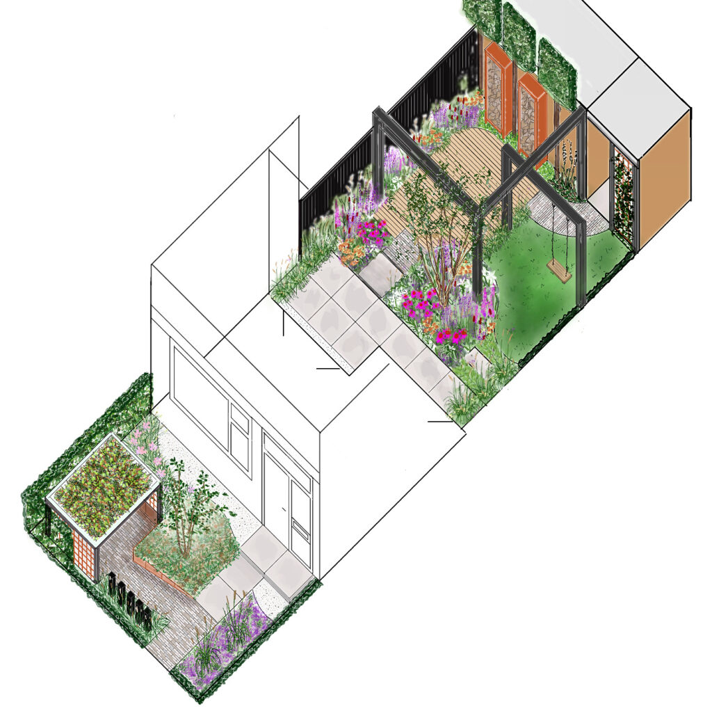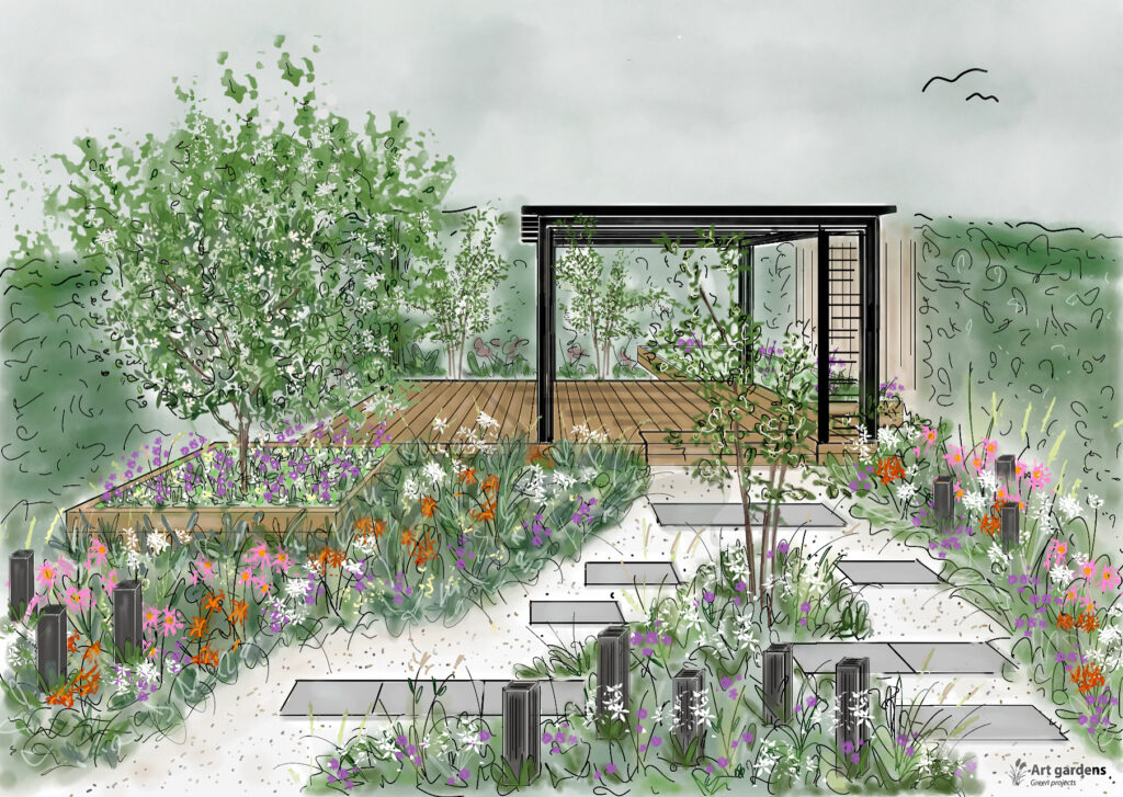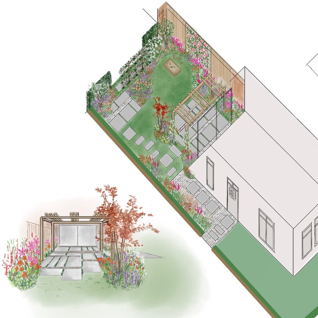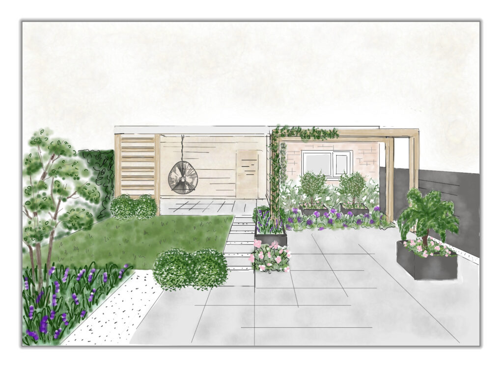 Ik teken de 2D en 3D ontwerpen met de hand op mijn iPad, zo kan ik mijn creativiteit kwijt en ontstaan er kleine kunstwerkjes die laten zien hoe de tuin eruit komt te zien.