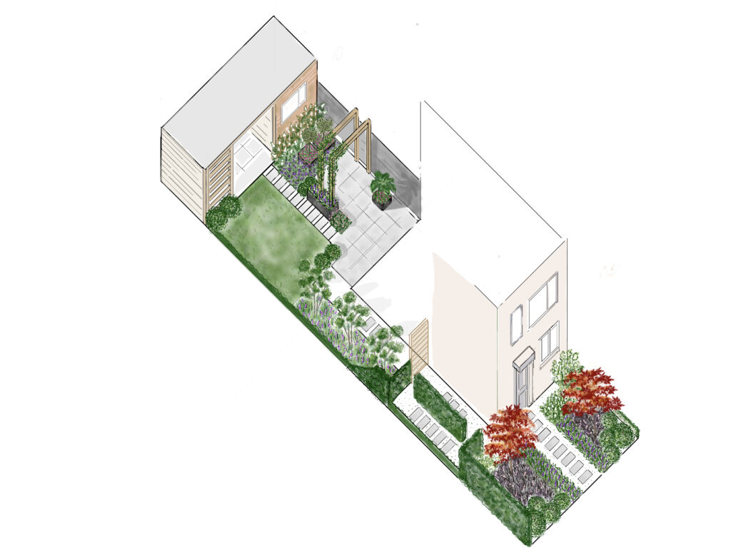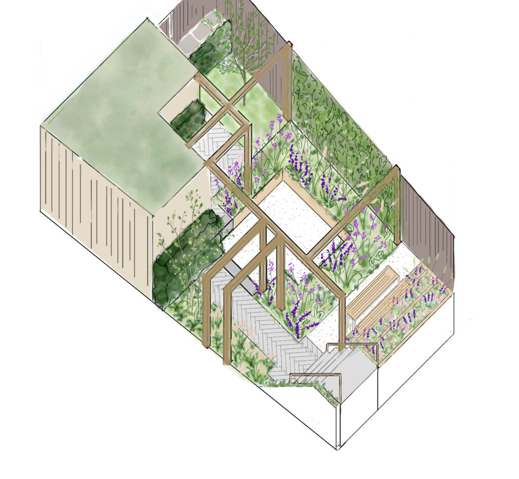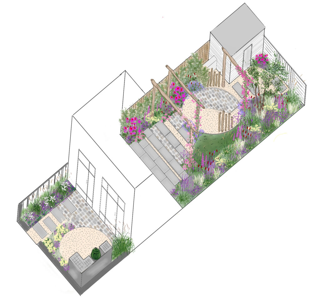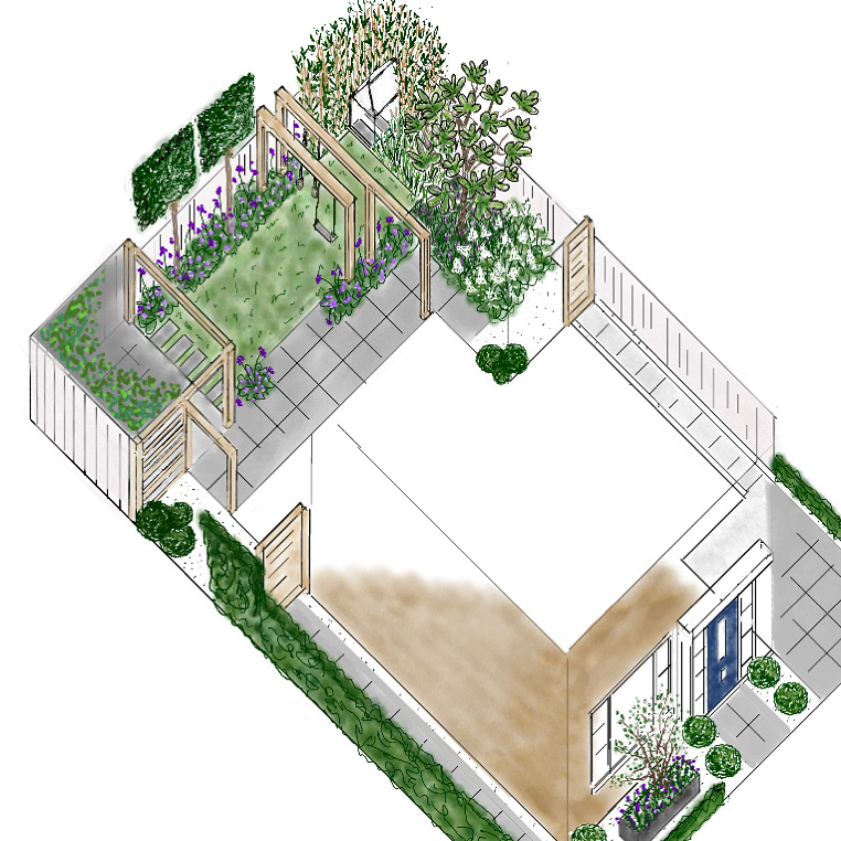 Ik teken de 2D en 3D ontwerpen met de hand op mijn iPad, zo kan ik mijn creativiteit kwijt en ontstaan er kleine kunstwerkjes die laten zien hoe de tuin eruit komt te zien.